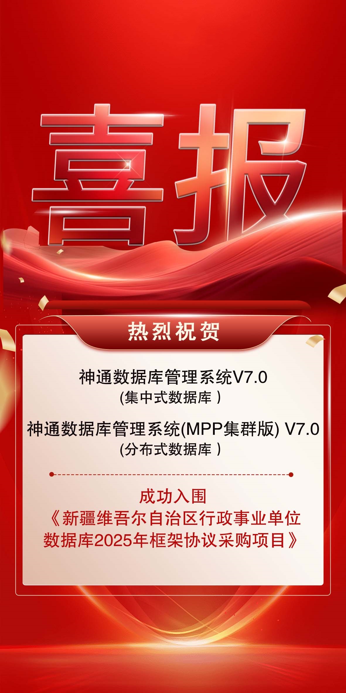 喜訊 神通數據庫集中式和分布式產品入圍新疆維吾爾自治區行政事業單位數據庫2025年框架協議采購項目