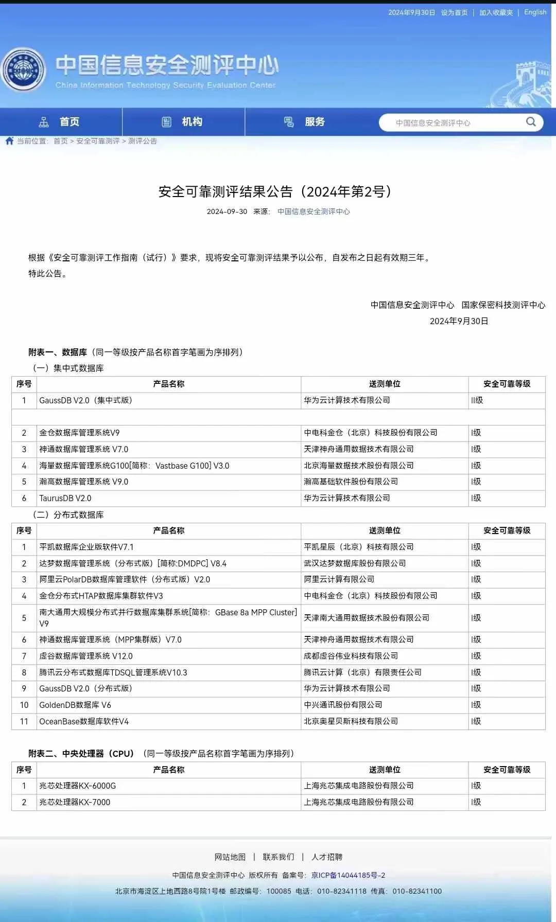 9月30日,中國信息安全測(cè)評(píng)中心、國家保密科技測(cè)評(píng)中心發(fā)布了《安全可靠測(cè)評(píng)結(jié)果公告(2024年第2號(hào))》。神軟子公司神通公司的集中式數(shù)據(jù)庫產(chǎn)品神通數(shù)據(jù)庫管理系統(tǒng) V7.0、分布式數(shù)據(jù)庫產(chǎn)品神通數(shù)據(jù)庫管理系統(tǒng)(MPP集群版)V7.0通過測(cè)評(píng),獲得安全可靠等級(jí)“I級(jí)”。