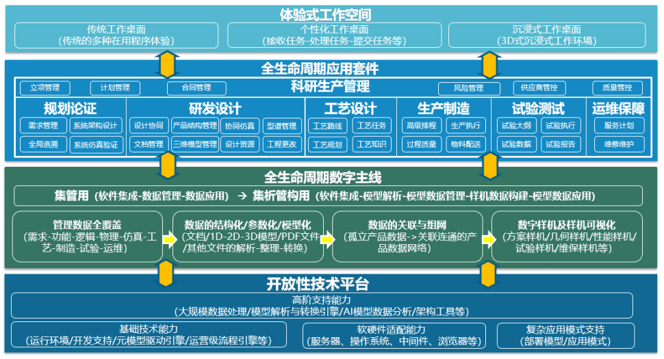 結(jié)合工程需求,甄選、評(píng)估工程所需的自主工業(yè)軟硬件生態(tài)伙伴,以PLM系統(tǒng)為牽引,聯(lián)合打造適合工程需要的構(gòu)件化、組合式應(yīng)用,并具備適應(yīng)業(yè)務(wù)變化的“快、靈”技術(shù)能力,支撐研制范式變革的動(dòng)態(tài)性、長期性,為總體、分系統(tǒng)和配套單位提供實(shí)用、好用的個(gè)性化解決方案。